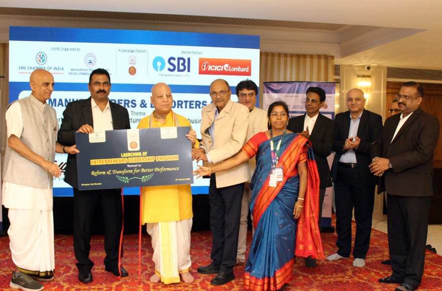 “ENTREPRENEURS LEADERSHIP PROGRAM” has initiated by ISKCON, KHARGHAR jointly with SME Chamber of India, Maharashtra Industry Development Association and SME Business Management Institute and launched by (His Grace). Dr. Surdas Prabhu – President & Trustee, ISKCON Temple, Kharghar, Navi Mumbai and Mr. Chandrakant Salunkhe – Founder & President, SME Chamber of India and Maharashtra Industry Development Association on 15th October 2025 at ISKCON temple. In picture Mr. Vaishnavanghri Sevak Das – Director, Bhaktivedanta College of Vedic Education, Mr. Varadhan T. R. – Director, Mascot Systems Pvt. Ltd., Mr. Mayank Thakker – Managing Director, LYM Technologies Pvt. Ltd., Ms. Puspanjali Nayak – AGM – SME, State Bank of India, Dr. Amogh Gauranga Das – Dean, Bhaktivedanta College of Vedic Education and Mr. Jay Acharya – Coordinator – Bhaktivedanta College of Vedic Education.